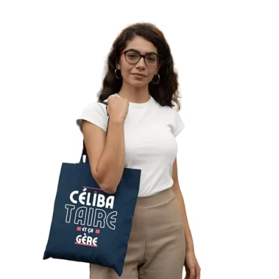 REPUBLIC OF CALIFORNIA Tote Bag Célibataire et Ça Gère Fun and Practical Fashion Accessory, Marine, 38 X 42 CM, Utility