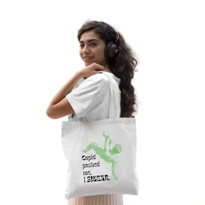REPUBLIC OF CALIFORNIA Tote Bag Cupid Pushed Me, I Swear Practical and Funny Bag, white, 38 X 42 CM, Utility