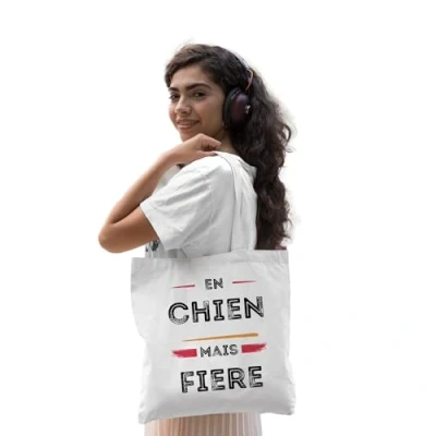 REPUBLIC OF CALIFORNIA Tote Bag En Chien Mais Fière Funny and Stylish Bag, white, 38 X 42 CM, Utility