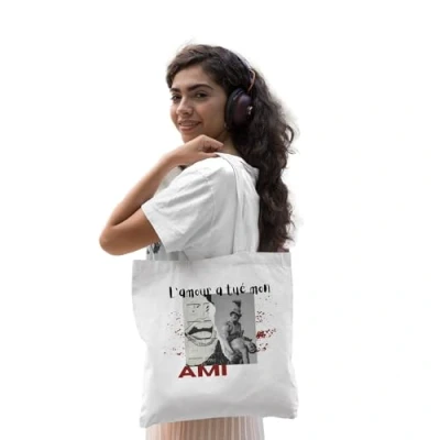 REPUBLIC OF CALIFORNIA Tote Bag L'Amour a Killed Mon Ami Fun and Bold Fashion Accessory, white, 38 X 42 CM, Utility