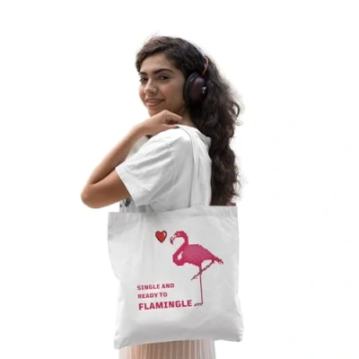 REPUBLIC OF CALIFORNIA Tote Bag Single and Ready to Flamingle Funny Trendy Bag, white, 38 X 42 CM, Utility