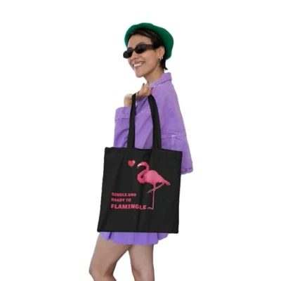 REPUBLIC OF CALIFORNIA Tote Bag Single and Ready to Flamingle Original Quirky Shopping Bag, Marine, 38 X 42 CM, Utility
