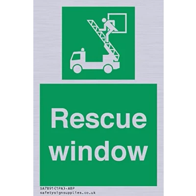 E017 : Rescue window This sign is made from vinyl silver sticker A8 portrait Sign Text: Rescue window