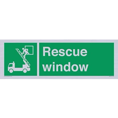 E017 : Rescue window This sign is made from vinyl silver sticker 62 landscape Sign Text: Rescue window