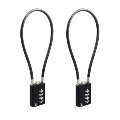 RESET 204 4 Digit Combination Lock with 30 cm Wire Rope, 5 mm Diameter Cable, High Security Lock, Suitable for Luggage, Gun Case, Trash Can Toolbox, Helmet, 2 Pack