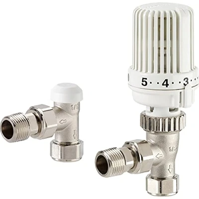 Resideo Honeywell VTL15 15A Essential TRV + Lockshield Set Reversible 15mm Angled Thermostatic Radiator Valve with Liquid Sensor 15A, White