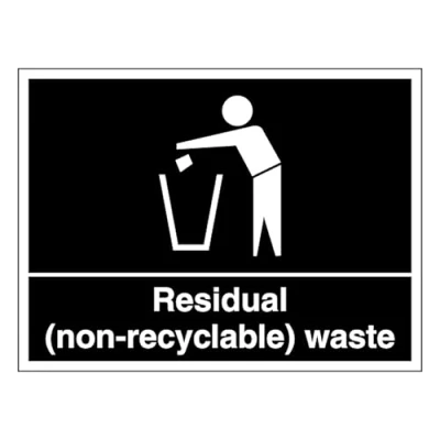 Landscape sign optimised for wide bin banks and counters—clearly marks the Residual (Non-Recyclable) Waste stream so users spot it at a glance. Supports the UK Simpler Recycling rollout with consistent labelling that streamlines collections and makes audits and contractor pickups easier. Reduces cross-contamination by directing non-recyclables to the correct bin, protecting recycling quality and lowering rejection fees. High-visibility artwork with long-wear, UV-stabilised print for reliable legibility on walls, bin lids and waste stations; available in multiple sizes and materials. 3mm Aluminium Composite – Tough, rustproof, and ideal for long-term indoor and outdoor use.