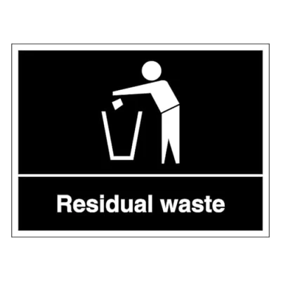 Landscape Residual Waste marker for fast, wide-angle readability along bin banks—keeps non-recyclables separate from recyclables. Aligned with the UK Simpler Recycling policy to standardise labels across sites, improving collection efficiency and reducing contamination fees. Plain, bin-side guidance that helps staff, visitors and contractors make correct disposal decisions in kitchens, corridors and public areas. High-legibility artwork with long-wear, UV-stabilised print; suitable for walls, bin lids and waste stations in multiple sizes and materials. 3mm Aluminium Composite – Tough, rustproof, and ideal for long-term indoor and outdoor use.