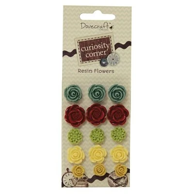 15 resin flowers mounted on backing card. 5 designs, 5 different colours, 3 of each colour/design. TRDCRF002 MPN DCRF002