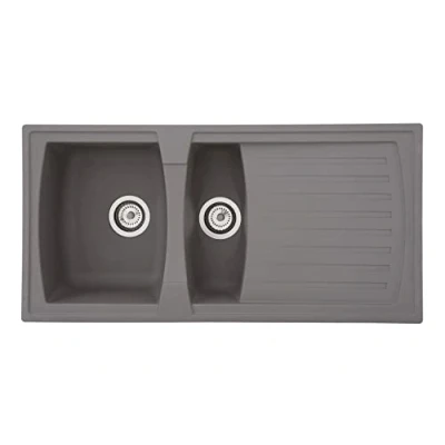 High quality: the Mineralite sink is a perfect addition to any kitchen thanks to the large draining board and the 1.5 sinks. With a dimensions of 100 x 50, it fits perfectly MINERALITE: Mineralite kitchen sinks are durable and temperature resistant up to 180 °C. The easy-care material of the sink is easy to clean and resistant to stains and bumps Installation: the built-in sink is intended for base cabinets from a width of 60 cm and can be installed on either side of the right or left. The tap holes of the sink are not punctured Box contents: in addition to the kitchen sink in concrete grey, drain and overflow set, as well as a strainer basket are included. Fixing clamps are also included for installing the sink International products have separate terms, are sold from abroad and may differ from local products, including fit, age ratings, and language of product, labeling or instructions.