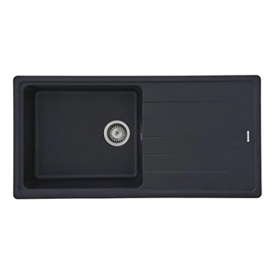 High quality: the granite sink is a perfect addition to any kitchen thanks to the large draining board and its large sink. With a dimensions of 100 x 50, it fits perfectly Granite: thanks to a high natural stone content, the sink made of granite is resistant and scratch-resistant. Built-in sinks made of granite are therefore particularly robust and temperature resistant up to 250 °C Design: the granite kitchen sink in square, modern style fits perfectly into a wide range of kitchen units. The granite used ensures a particularly high-quality appearance Installation: the built-in sink is intended for base cabinets from a width of 60 cm and can be installed on either side of the right or left. The tap holes of the sink are not punctured Box contents: in addition to the granite sink in black, drain and overflow fittings, as well as a strainer basket are included. Fixing clamps are also included for installing the sink, Weight: 24.25084882 Pounds, Manufacturer: respekta