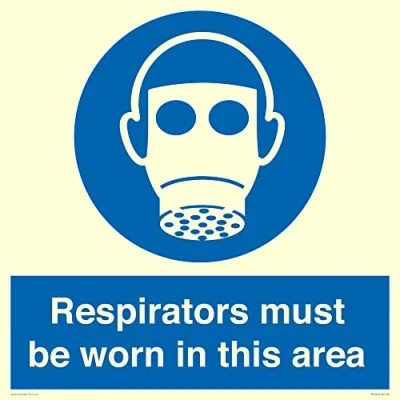 M017 : Wear respiratory protection This sign is made from vinyl photoluminescent sticker S60 square Sign Text: Respirators must be worn in this area