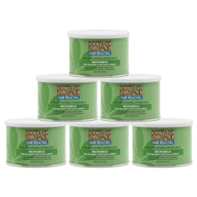 RESTASE Liposoluble Depilatory Wax, Micromic, Sensitive Skin and Short Difficult Hair, 6 x 400 ml, Made in Italy