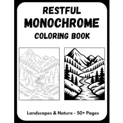 Restful Monochrome Coloring Book: Escape into Mindful Landscapes, Nature, Animals & Calming Designs for Adults Seniors One Color Stress Relief