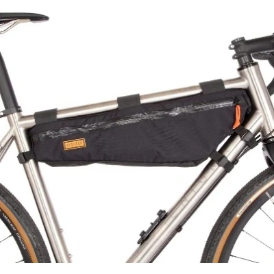 With no mounts or screws, the bags come in three different sizes to suit any frame. With YKK zips, textured nylon outer and VX21 fabrics, our frame bags are tough, durable and versatile.Rubberised strapping provides extra grip to the frame and reflective paracord zip pulls give additional security. Inner mesh pockets keep you organised whilst on the road and the medium and large bags contain an additional document pocket. An extra cable slot is provided for dynamo cabling.Hand made in our Yorkshire workshop, all bags are finished with the classic Restrap label, made from vegan-friendly PU.Weight - 137g/200g/238g (small/medium/large)Capacity - 2.5L/3.5L/4.5L (small/medium/large)Key Features:Textured nylon outerDesigned to fit any bicycleYKK aquaguard zipsInternal organisationCable port