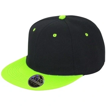 Result Unisex Core Bronx Original Flat Peak Snapback Dual Colour Cap (One Size) (Black/Lime Green)