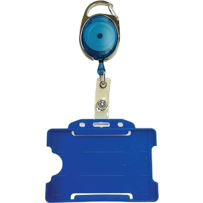 Retractable Badge Reel with Carabiner Clip and Blue ID Card Holder, Set PCL Media ltd