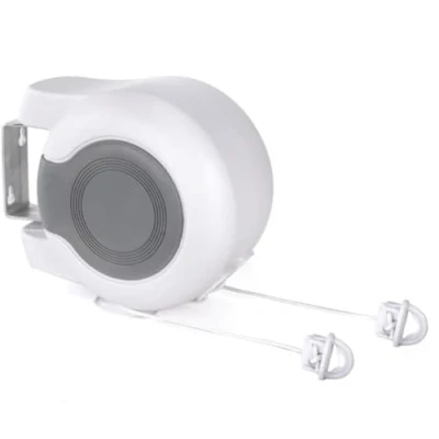 DUAL LINE DESIGN: Features twin retractable cables, each providing 15 metres of line length for a total of 30 metres of drying space WALL-MOUNTED SYSTEM: Space-saving design that can be securely mounted to exterior walls for convenient outdoor drying RETRACTABLE MECHANISM: Smooth retraction system keeps lines neat and protected when not in use, preventing tangling and weather damage DURABLE CONSTRUCTION: Heavy-duty components ensure reliable performance and long-lasting stability for regular household use DIMENSIONS: Each line extends to 15 metres, providing ample space for multiple loads of laundry with a clean white finish