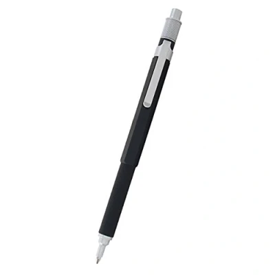 AmazonHexomatic Ballpoint pen Hexagon barrel prevents pen from rolling and easy to grip Packaged in a fold out Hex shaped box Click top ballpoint pen Silver accents