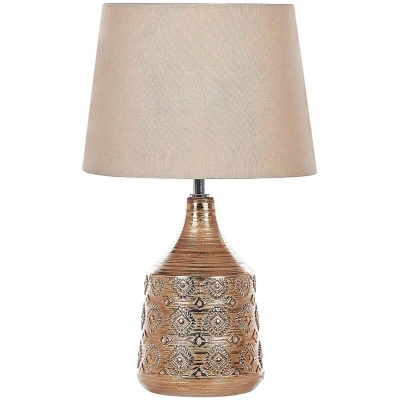 Retro Ceramic Bedside Table Lamp with Beige Empire Shade Golden Brown Wari