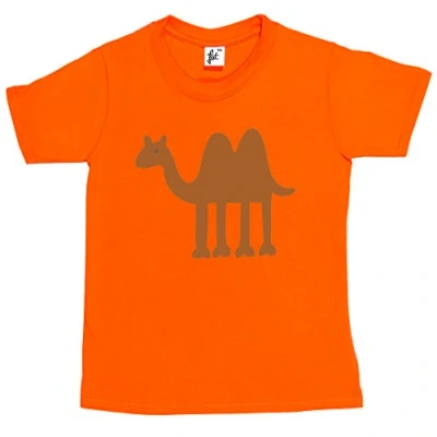 Retro Egyptian Camel Cartoon Kids Boy Girl Cotton Short Orange Sleeve T Shirt Size 3 4 Years