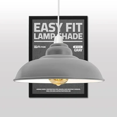 STYLE: Elegant gray metal lamp shade with a curvy design, perfect for any fitting space. Its sleek, modern aesthetic adds warmth and sophistication, making it an ideal accent for stylish interiors. DIMENSION: The lampshade has a diameter of 32 cm and a height of 13.5 cm, providing the perfect balance of size and style for your space. MATERIAL: This metal lamp shade features a gray-painted finish. The durable metal construction ensures stability, with a sleek finish for added style. EASY TO INSTALL: The E27 industrial light package includes a lampshade with a reducer plate only. No electrical parts are included. Easily fits to the ceiling for a hassle-free setup. PACKAGE INCLUDES: 1 x Lampshade with reducer plate. Designed to add a touch of sophistication and elevate the style of any room in your home. RISK FREE PURCHASE: Your satisfaction is our priority. From the moment you place your order to the final glow in your home, our friendly support team is here to make every step seamless and stress-free., Weight: 0.551155655 Pounds, Manufacturer: DC VOLTAGE