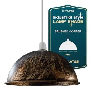 Retro Metal Light Shades, Vintage Style Ceiling Island Lamp Pendant Shade, Non Electric 21cm Easy Fit Curved Kitchen Lampshade, Office, Living Room Shade with Reducer Ring (S2 Brushed Copper)