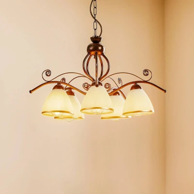 Retro Multi Arm Pendant Ceiling Light Brown, 5x E27