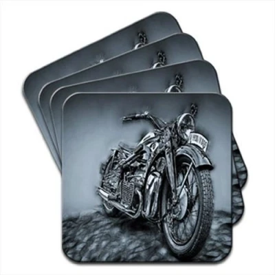Retro Old Motorbike Drawing Set of 4 Coasters