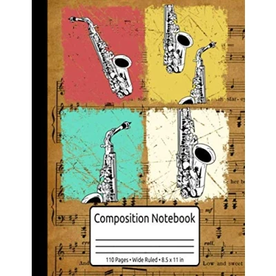 Retro Saxophone Gifts Women Men Jazz Music Composition Notebook 110 Pages Wide Ruled 8.5 x 11 in: For &
