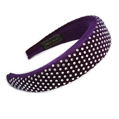 Retro Thicken Padded Velvet Diamante Wide Chunky Hair Band/HeadBand/Alice Band in Purple