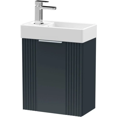 Retro Wall Hung 1 Door Cloakroom Vanity Basin Unit 400mm, Satin Dark Grey