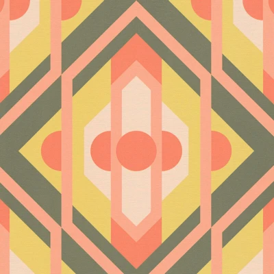 Retro wallpaper wall Profhome 395313 hot embossed non woven slightly textured with geometric shapes matt green orange brown lemon yellow