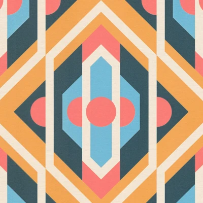 Retro wallpaper wall Profhome 395314 hot embossed non woven slightly textured with geometric shapes matt blue ochre yellow red cream 4,5 m2