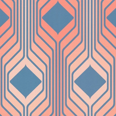 Retro wallpaper wall Profhome 395322 hot embossed non woven slightly textured with geometric shapes matt blue beige red pastel orange azure
