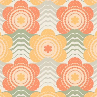 Retro wallpaper wall Profhome 395394 hot embossed non woven slightly textured with floral pattern matt orange moss grey ochre yellow olive