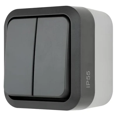 The series switch has two switches, which allow the independent switching of two circuits. For example: two lamps or a chandelier indoors Area of application: wet room, dust protection and radiation protection (IP55). For use in cellars, workshops, garages, halls etc. (outdoors) Switch housing matt, switch matte Switch: 1 pin, 230 V ~, 10 A. Box contents: 1 series switch Dimensions A/W switch (L x W x H): 81 x 75 x 60 mm, weight: 142 g
