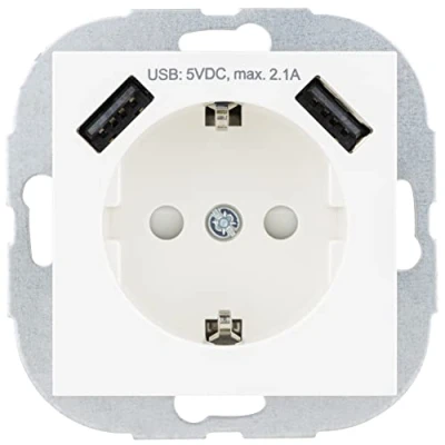 Socket with USB connection twice. Simply plug in the charging cable and charge your smartphone, headset or camera Suitable for the Matrix switch series: socket with increased touch protection. Cover made of plastic, white USB connection: 2 x USB type A, 5VDC; max. 2.1 A; max. 10.5 W. Socket: 230 V, 50 Hz, 16 A, max. 3680W. For dry indoor use only (IP20) Only in combination with optionally available frames (0239810104 1-fold, 0239820104 2-fold, 0239830104 3-fold, 0239840104 4-fold) Dimensions (L x W x H): 72 x 72 x 55 mm, weight: 107 g, Manufacturer: REV Ritter GmbH