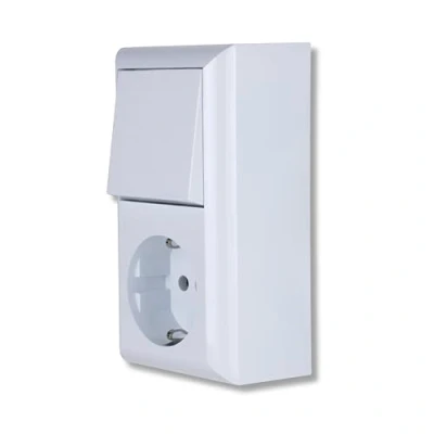 REV 0510156777 PlanoLuxe Surface Mounted on/Off Switch with Socket, White, A/W Schalter + Steckdose