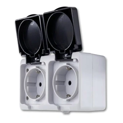 The double socket surface-mounted has 2 hinged lids, which protect against moisture. Ideal for the use of IPx4 connectors. Space-saving installation on wooden beams, posts or pillars There are already cut-outs in the housing through which a cable can be routed. A rubber seal protects the interior from dust and moisture. Socket housing and lid matt Wet room double socket horizontal with reduced dimensions compared to conventional models. Surface-mounted socket: 2-pin. Space-saving installation on the wall. Box contents: one 2-way socket A surface-mounted socket does not always have to look bulky. Reduce the conspicuity of a conventional wet room socket by using our AquaMini socket series International products have separate terms, are sold from abroad and may differ from local products, including fit, age ratings, and language of product, labeling or instructions., Manufacturer: REV Ritter GmbH