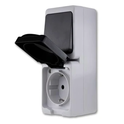 Switch combination: socket + off, change-over switch. Areas of use: wet rooms, dust and splash-proof IP54. Space-saving installation on wooden beams, posts or pillars Surface-mounted switch and socket as a combination for use in the basement, workshop, garage, hall, stable, garden and so on. Outdoor use. Matte housing and switch. Cable guide with rubber seal A light switch, socket does not always have to look bulky. Reduce the conspicuity of a conventional wet room switch by using our AquaMini switch series International products have separate terms, are sold from abroad and may differ from local products, including fit, age ratings, and language of product, labeling or instructions., Manufacturer: REV Ritter GmbH