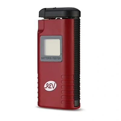 Test your batteries easily with this battery tester. The upper part of the battery tester can be extended and adjusted to the size of the battery. Plus contacts in the top, minus in the bottom The battery tester has the test contacts for the 9V block batteries on the side. With the function selector switch, the battery voltage can be selected. Large LCD display The battery tester is designed for 1.2 V, 1.5 V, 3 V and 9 V batteries. The battery sizes are: AAA, AA, C, D, button cells and PP3. Suitable for NiMH, NiCd, zinc carbon and recovery. Batteries The measuring range is 0.2 V - 10.5 V. The resolution of the measured values at 0.1 V. Two 1.5 V LR03 Micro AAA batteries are required for operation (not included) Technical details of the battery tester: working temperature: 0 °C to +40 °C, max. 75% humidity, Dimensions (WxDxH): 90 x 45 x 22 mm, Weight: 44g, Weight: 0.09700339528 Pounds, Manufacturer: REV RITTER