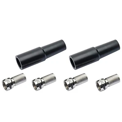 F-connector set consisting of 4 x F-connectors and 2 x weather protection sleeves for connecting your LNB to your satellite receiver Antenna cable plug suitable for diameter 7 mm coaxial cable. Insulate, turn the metal mesh backwards, turn on the F-connector, done The plug can be used universally: multiswitch, satellite receiver, LNB, antenna sockets, satellite sockets and much more Weight: 27 g. Colour: silver, Weight: 0.05952481074 Pounds, Manufacturer: REV Ritter