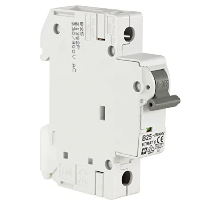LS switch as current-limiting self-shut-off switch. Trigger characteristic medium slow (B). Space requirements: 1 TE Installation height of the circuit breaker is 68 mm and can be used in any standard distribution box Short-circuit protection up to 6 kA 25 Amps, rated voltage 230/400V~ Circuit breaker dimensions (WxDxH): 18 x 87 x 68 mm, Weight: 110g. Colour: grey, Manufacturer: REV Ritter