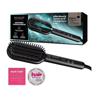 Experience the ultimate solution for achieving silky-smooth hairstyles with the Revamp Progloss Deepform Straightening Brush. Designed to effortlessly tame unruly hair, this innovative styling tool features a unique combination of hot ceramic bristles and extra-long cool bristles, allowing you to detangle and style larger sections of hair in record time.