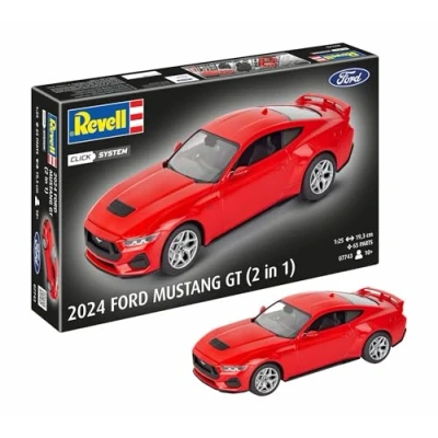 2024 Ford Mustang GT – model kit with easy-click system: Pure power, simple assembly! Innovative easy-click system: No gluing or time-consuming assembly – the parts can be easily plugged together. Detailed design: Multi-colored components that accurately replicate the powerful look of the 2024 Mustang GT. Moving Wheels: Experience dynamic details for a realistic finish. Customization: Decorate your model with included stickers and decals.