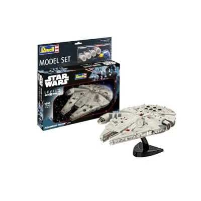 Revell Model Set 63600 Star Wars Millennium Falcon 1:241 Scale Unbuilt/Unpainted Plastic Kit with Contacta Professional Glue, Paintbrush & Selected Aqua Color Paints