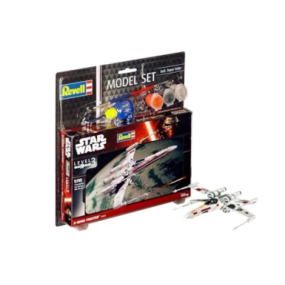Revell Model Set 63601 Star Wars X wing Fighter 1:112 Scale Unbuilt/Unpainted Plastic Kit with Contacta Professional Glue, Paintbrush & Selected Aqua Color Paints