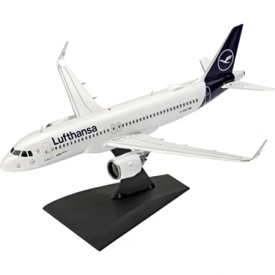 Revell Model Set 63942 Airbus A320neo Lufthansa "New Livery" 1:144 Scale Unbuilt/Unpainted Plastic Kit with Contacta Professional Glue, Paintbrush & Selected Aqua Color Paints