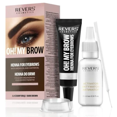 REVERS COSMETICS Eyebrow Dye Kit Dark Brown Ammonia Free, Brow Tint with Argan Oil and Castor Oil, Salon Quality, Natural Result, Lasts Up to 4 Weeks, 15 Applications